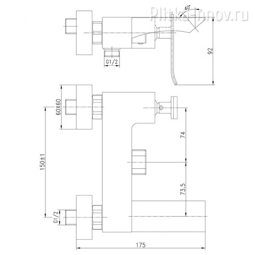 Смеситель для ванны с фиксированным изливом
