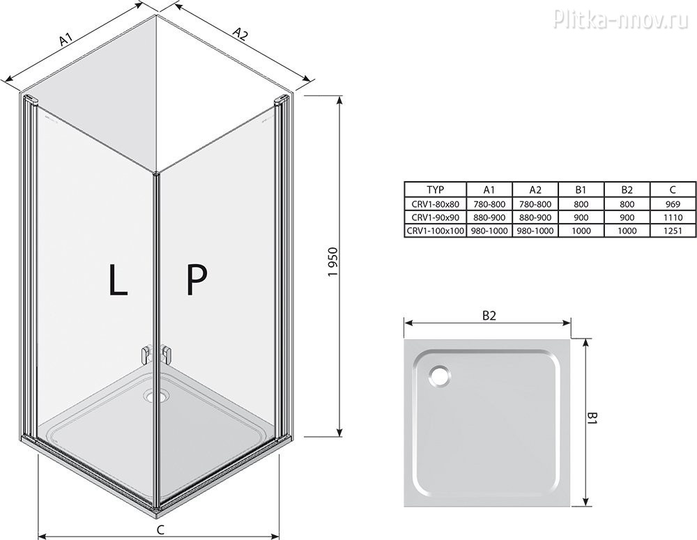 Chrome CRV1-+CRV1 90х90 блестящий+прозрачное стекло Ravak
