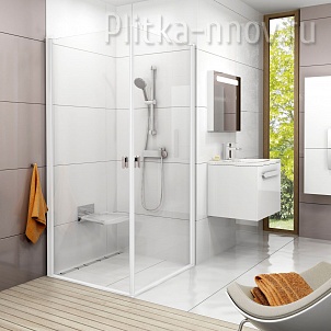 Скомбинировав две душевые двери, создадите квадратный или прямоугольный душевой уголок необходимой Вам планировки со входом до 125 см. Душевые двери можно использовать с неподвижной стенкой. Более комфортное принятие душа Вам обеспечит прямоугольный вариант душевого уголка. Вместо размера 90 x 90 см отдайте предпочтение, например, размеру 80 x 100 см, который занимает столько же места, но имеет больше выгод.