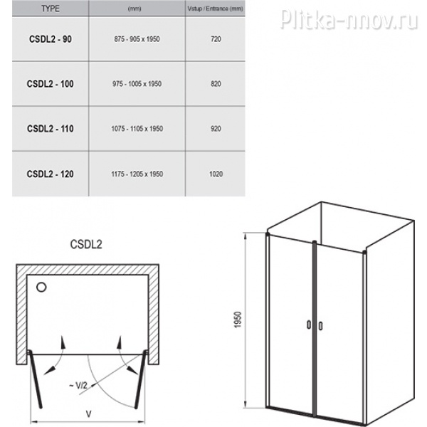 Ravak Chrome CSDL2 - Идеальное решение для создания душевого пространства в нише с крайне широким входом до 102 cм. Двери открываются и вовнутрь душевого уголка, что позволяет его проветривать и тем самым избежать неприятных капель воды на полу.