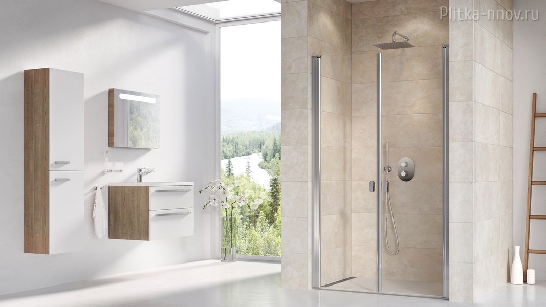 Идеальное решение для создания душевого пространства в нише с крайне широким входом до 102 cм. Двери открываются и вовнутрь душевого уголка, что позволяет его проветривать и тем самым избежать неприятных капель воды на полу.