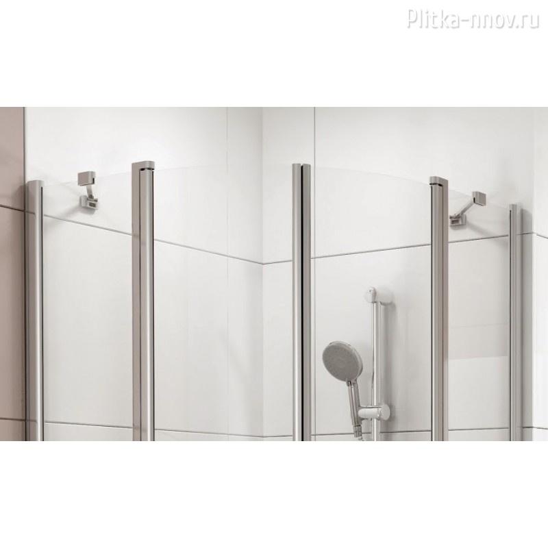 В безрамном полукруглом душевом уголке используются поворотные колонки и две двери предлагая удобный вход. Благодаря своей форме экономит пространство в ванной комнате при высоком качестве и изысканном дизайне.