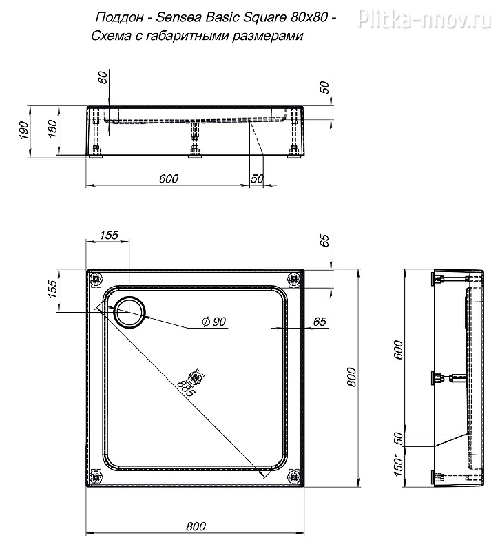 Душевой поддон Aquanet GL180 80x80 изготовлен из такого надежного материала, как акрил. Это современный материал, который обладает множеством достоинств. Они понравятся практичным хозяевам. Форма у него квадратная. Создавая проект ванной комнаты, следует учесть параметры изделия: ширину - 800 мм, глубину - 800 мм, высоту - 190 мм. Кстати, это средний поддон. Часто именно это значение является главным критерием выбора. Произведен поддон в России.
