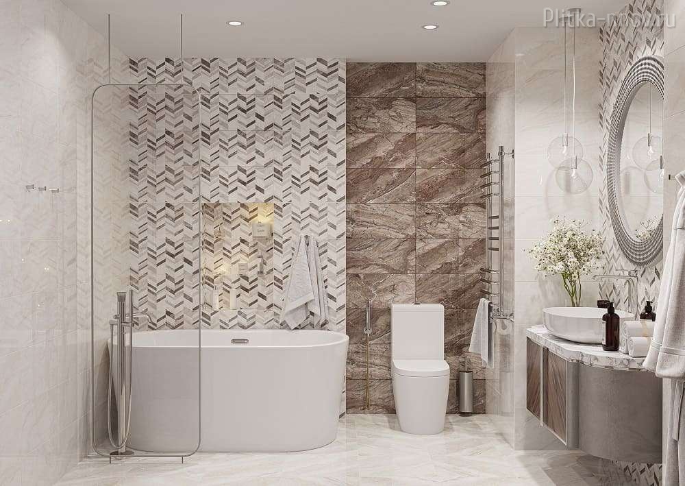 Современные интерьеры тяготеют к лаконичности форм и нейтральности палитры, и керамическая плитка Sonesta полностью соответствует этим требованиям. В состав коллекции входят базовые плиты с имитацией мрамора и декор с геометрией