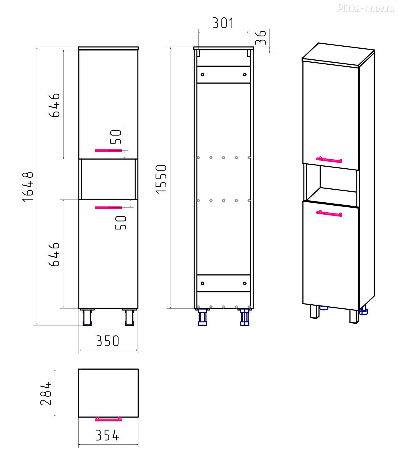 Размер мебели, мм (ШxГxВ) 355x285x1550