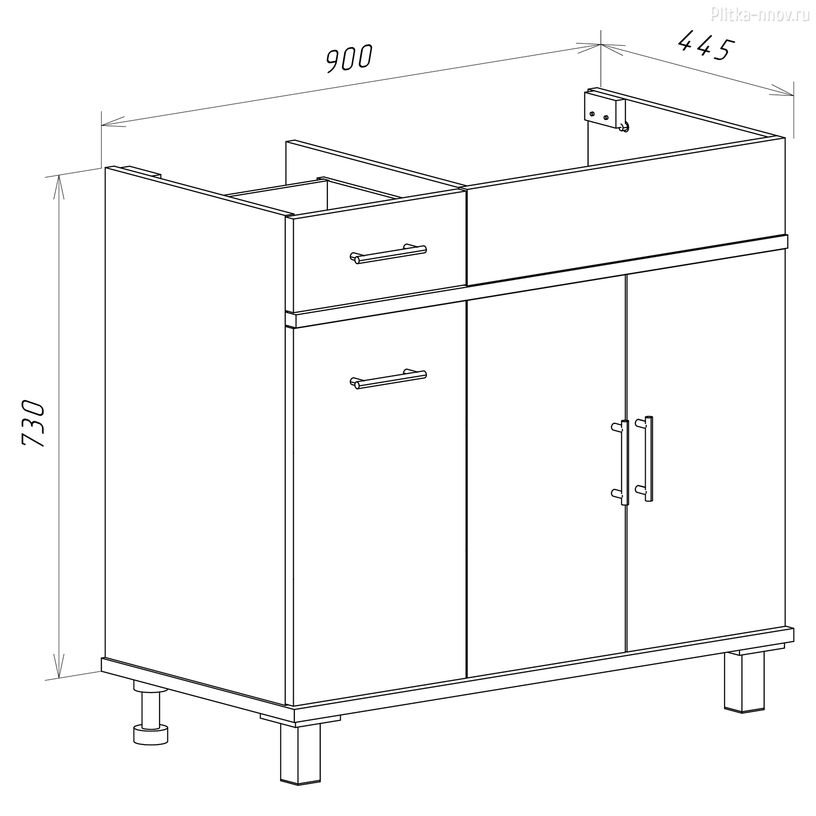 Размер мебели, мм (ШxГxВ) 900x438x727