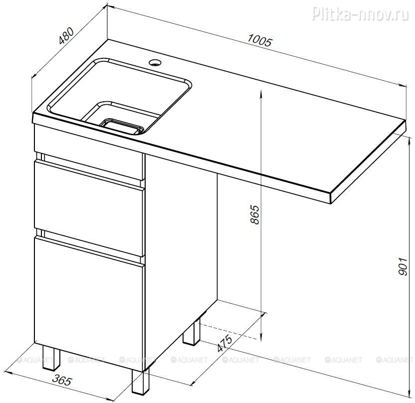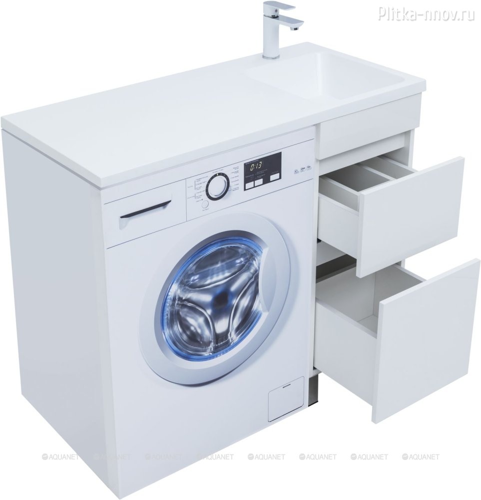 Вега 100 (2 ящика) L/R Тумба с раковиной над стиральной машинкой Aquanet