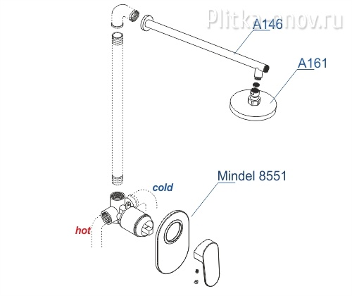 A85146 Встраиваемый комплект для душа с верхней душевой насадкой