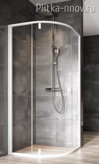 Изделие состоит из двух прямых неподвижных частей и одной изогнутой части, образующей дверь поворотного типа. Повернув изделие на 180°, получите левый/правый варианты входа. Устанавливается в облицованный кафелем угол ванной комнаты на поддоны RAVAK RONDA, ELIPSO, ELIPSO PRO, ELIPSO PRO FLAT, ELIPSO PRO CHROME или непосредственно на пол со встроенным душевым каналом.