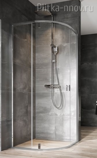 Изделие состоит из двух прямых неподвижных частей и одной изогнутой части, образующей дверь поворотного типа. Повернув изделие на 180°, получите левый/правый варианты входа. Устанавливается в облицованный кафелем угол ванной комнаты на поддоны RAVAK RONDA, ELIPSO, ELIPSO PRO, ELIPSO PRO FLAT, ELIPSO PRO CHROME или непосредственно на пол со встроенным душевым каналом.