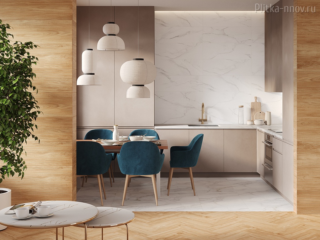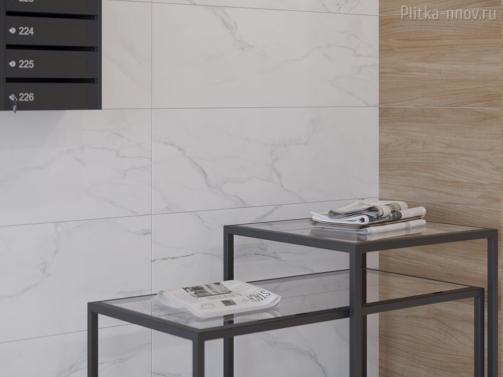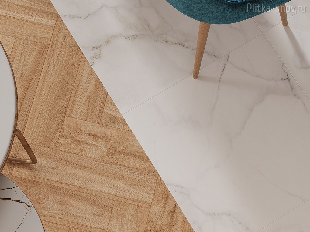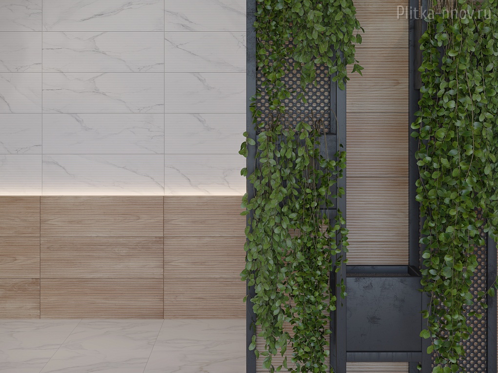Белый мрамор с серыми прожилками и текстура более темных плит под натуральное дерево сделали коллекцию Aspen особенно привлекательной для любителей скандинавского стиля. Сочетание керамогранитной плиты с текстурой белого чистого мрамора с небольшой декоративной доской с деревянной текстурой придадут интерьеру ещё больше натуралистичности. А используя рельефную плитку как акцентный элемент интерьера, можно с легкостью зонировать пространство по своему усмотрению.