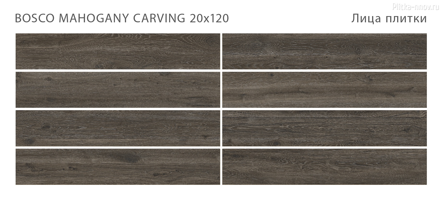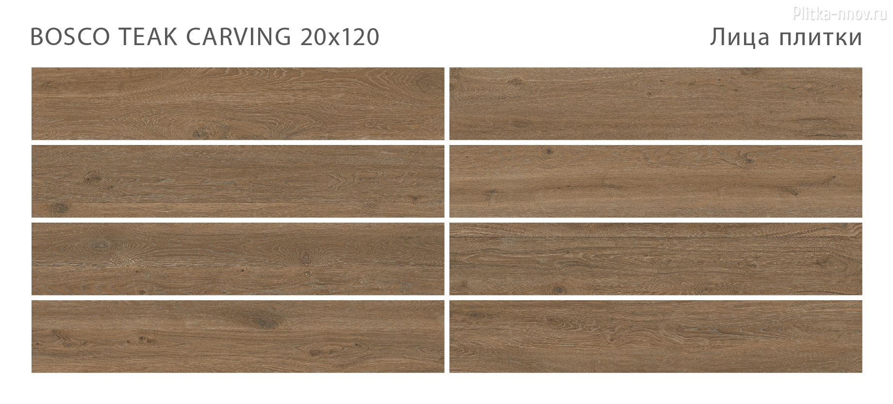 BOSCO - коллекция из матового керамогранита 20х120 c эффектом карвинга, поверхность которого имитирует натуральное дерево различных тонов. Поверхность обладает противоскользящими свойствами, что обеспечивает безопасность использования и при этом позволяет легкий уход и уборку. Основные преимущества: - Высокие прочностные характеристики; - Морозостойкость; - Нескользящая поверхность; - Легко комбинируется натуральными материалами: натуральным камнем, деревом и т.д.