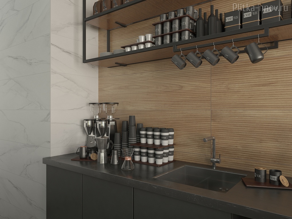 Сочетание разных текстур — мрамор с нейтральными прожилками и деревянная текстура настенной рельефной плиты, серый керамогранит терраццо и декоративная доска под дерево — вдохновили нас на создание коллекции Fjord. Благодаря сочетанию теплых плит с деревянной текстурой и холодных плит под мрамор, можно различно зонировать помещение и создавать многослойный современный интерьер в скандинавском стиле.
