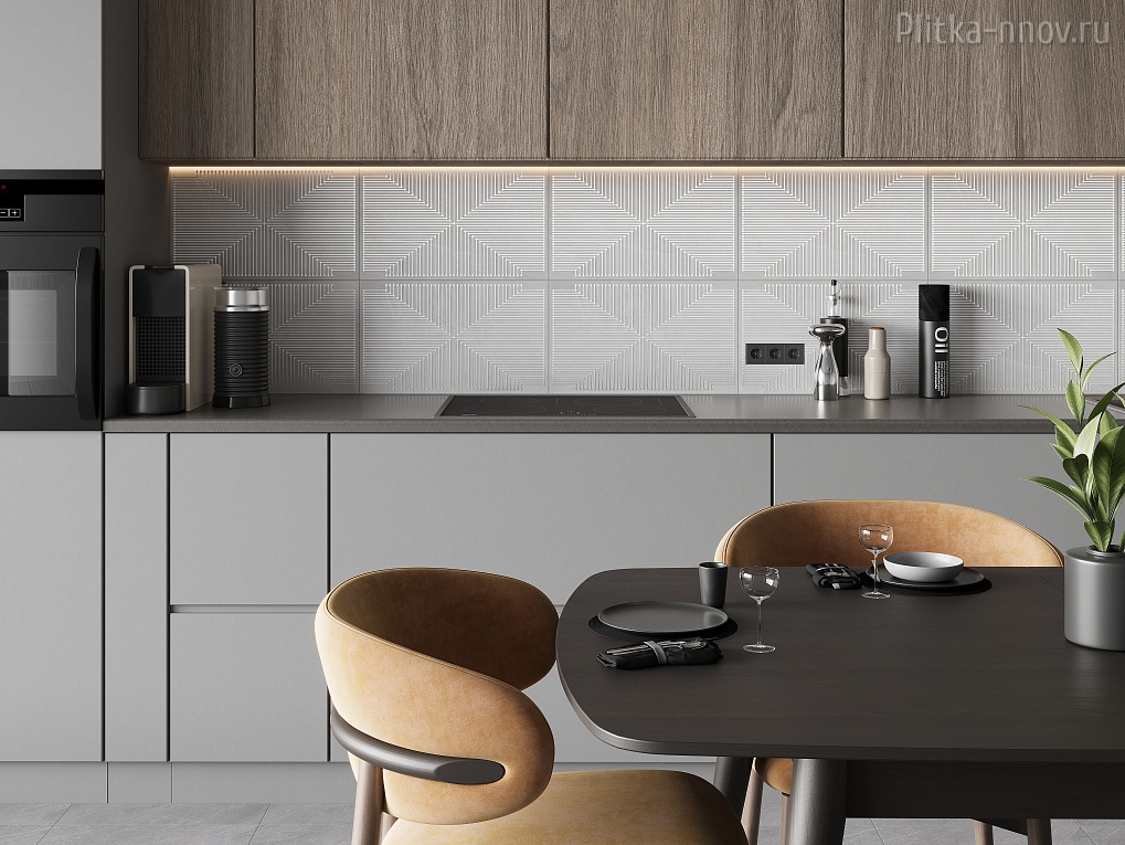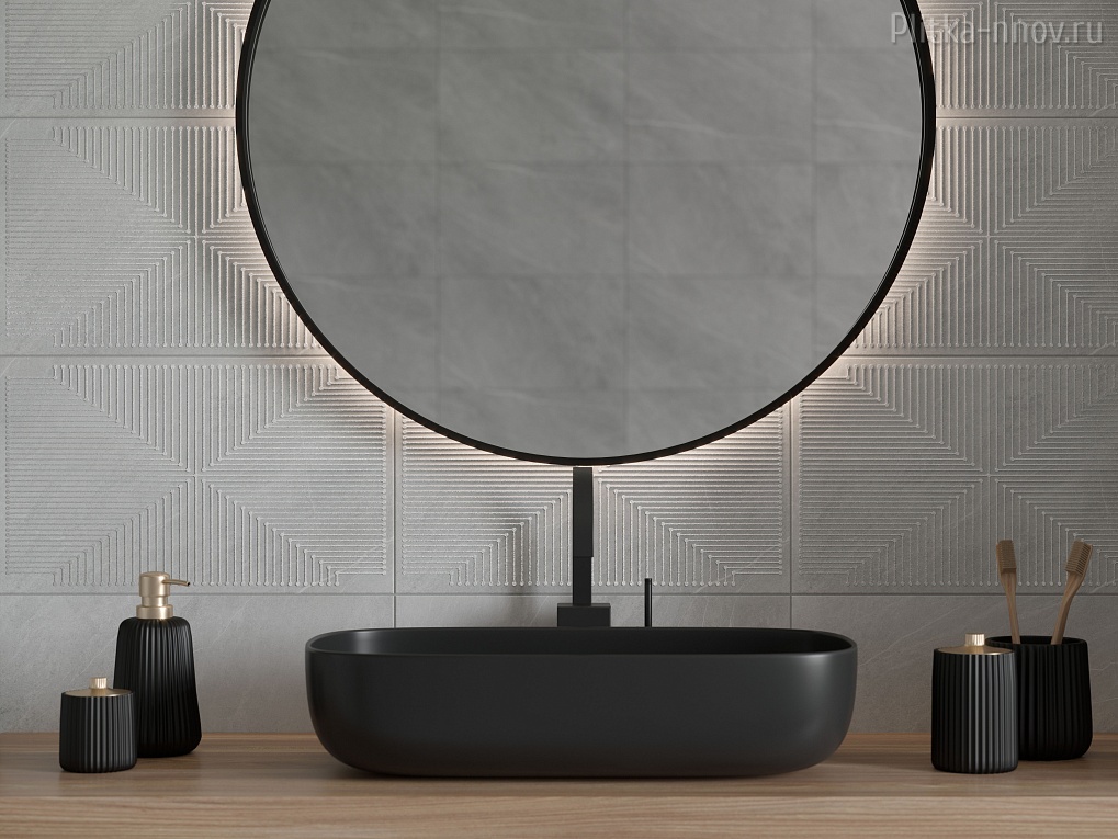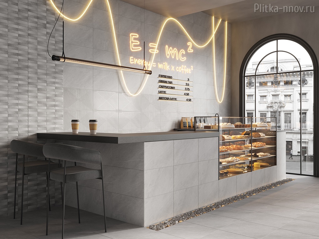 Сила и красота вулканической горной породы, застывшей на поверхности керамических плиток и керамогранита коллекции Magma. Современный и строгий стиль коллекции позволяет создавать аскетичные и ультрамодные интерьеры. Основной цвет базовых плиток – нейтральный серый с текстурой натурального камня магматических пород и матовой поверхностью. В качестве декора используется плита такого же формата с современным геометрическим орнаментом. Особенно полно он раскрывается в ковре, когда стыкуясь друг с другом на плитках вырисовываются крупные, играющие на свету серебристо-перламутровые ромбы. Акцентная плитка коллекции имеет рельеф из крупных разнонаправленных прямоугольников с объемными выступающими вершинами. Пол комплектуется классическим керамогранитом формата 45х45 см, который повторяет текстуру светлой базовой плитки. В качестве дополнительного элемента выступает керамогранитная доска с текстурой дерева Oslo 12,5х50 см. Она даёт возможность создать комбинации, которые выгодно оттенят заглавный серый тон интерьера.