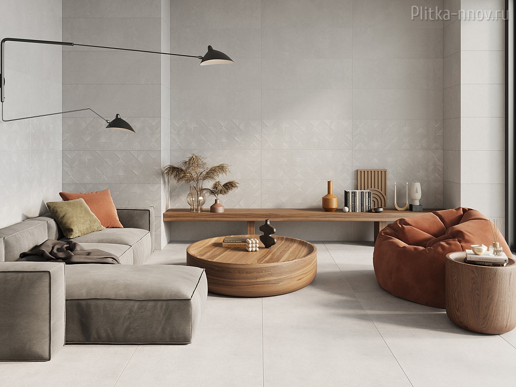 Коллекция Origami объединила в себе принципы японского искусства складывания фигурок из бумаги — оригами и паттерн в виде пэчворка, который сочетает в себе белый мрамор, терраццо и бетон. Нейтральный серый цвет коллекции служит прекрасным фоном для актуального минималистичного интерьера в стиле джапанди. А добавляя в интерьер деревянные декоративные элементы можно сделать его более уютным и комфортным.
