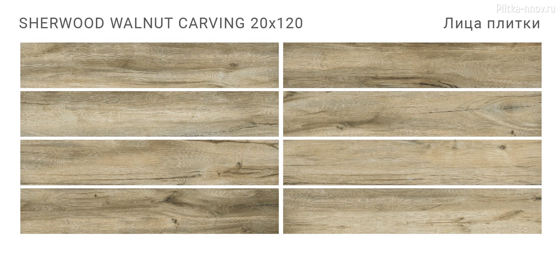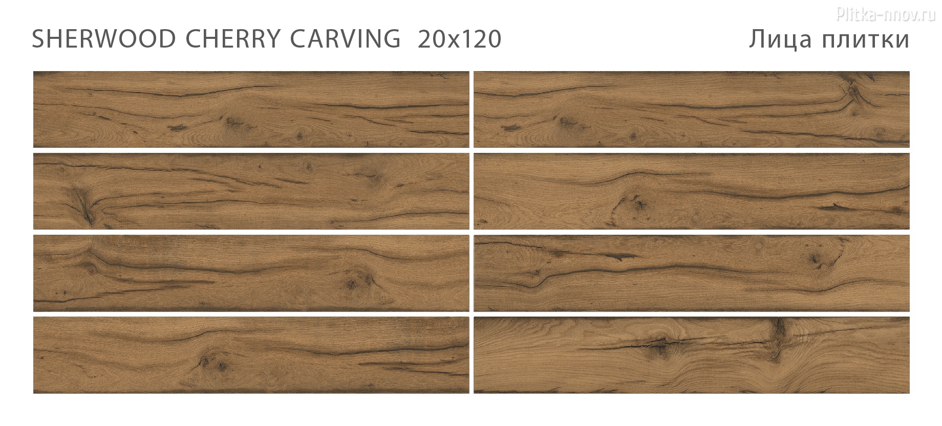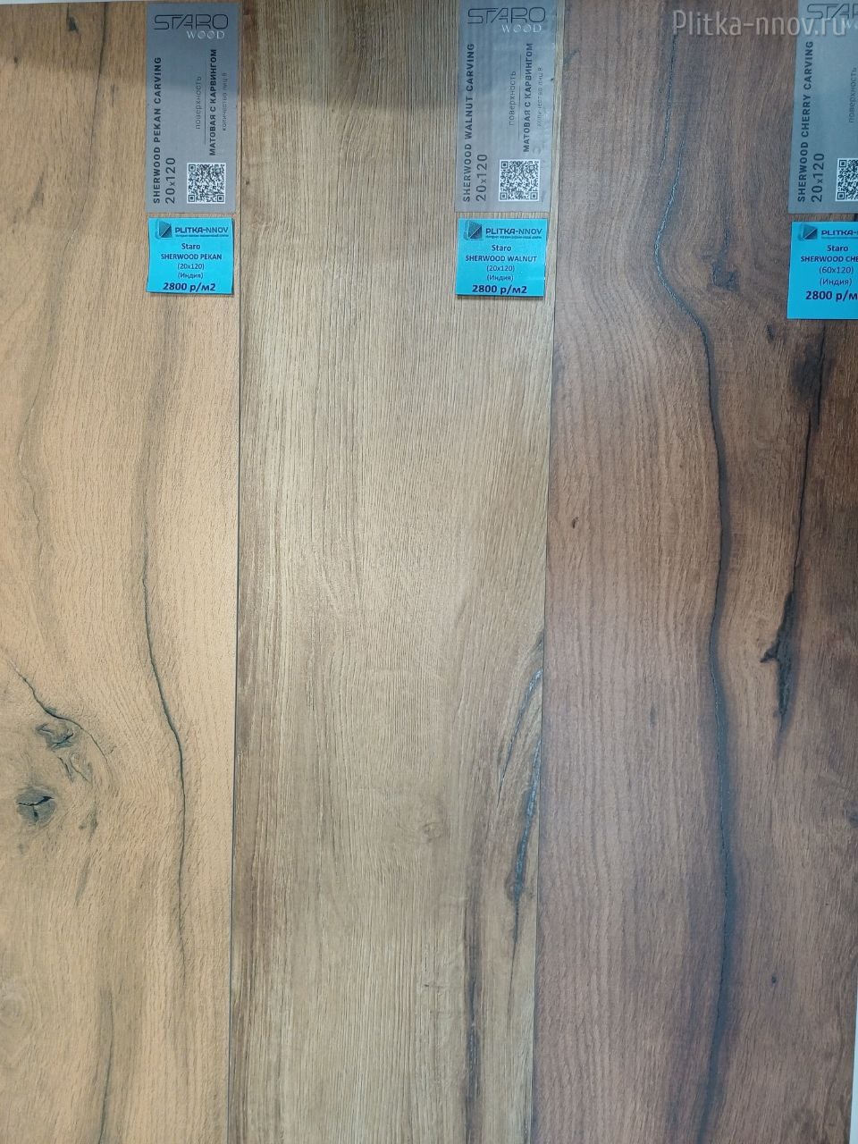 SHERWOOD - коллекция из матового керамогранита 20х120 c эффектом карвинга, поверхность которого имитирует натуральное дерево различных тонов. Поверхность обладает противоскользящими свойствами, что обеспечивает безопасность использования и при этом позволяет легкий уход и уборку. Основные преимущества: - Высокие прочностные характеристики; - Морозостойкость; - Нескользящая поверхность; - Легко комбинируется натуральными материалами: натуральным камнем, деревом и т.д.