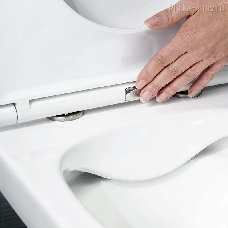 Афина PN41041 - подвесной унитаз с ультратонким, антибактериальным сиденьем с плавным закрыванием и легкосъемным механизмом, петли хром.