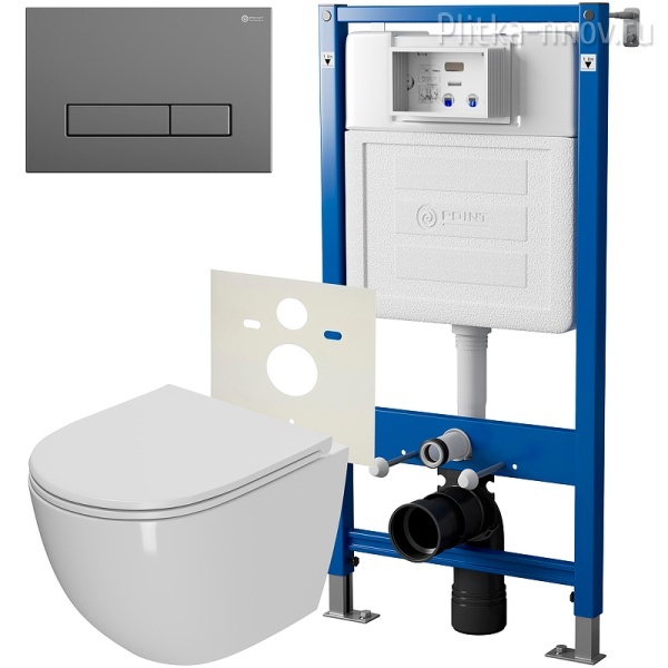 Комплект унитаза с инсталляцией Point Афина PN48056GM с сиденьем Микролифт и клавишей смыва Графит