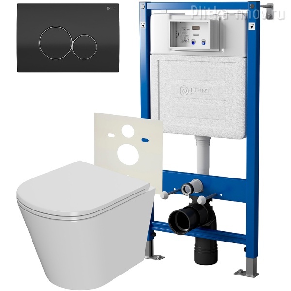 Виктория PN48066BC Комплект унитаза с инсталляцией клавишей смыва Черн. матовый Point