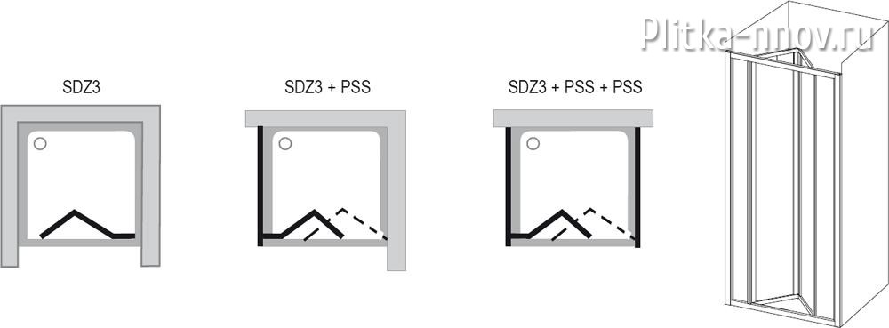 Конструкция дверей :SDZ3- трехэлементная складывающееся;PSS-неподвижная