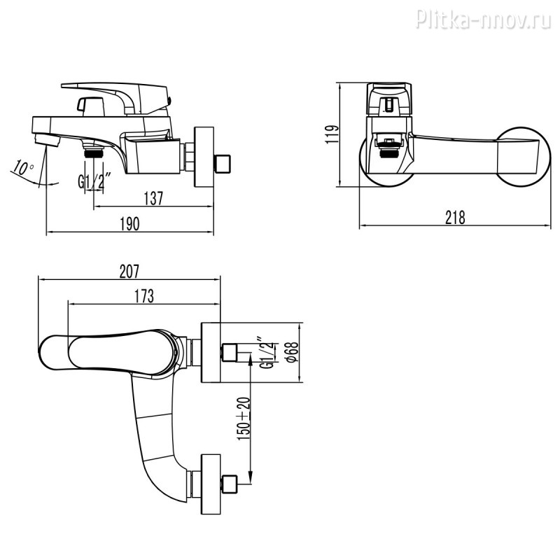 Аксессуары в комплекте: шланг 1,5 м, настенное поворотное крепление, 3-функциональная лейка Ø87x221 мм