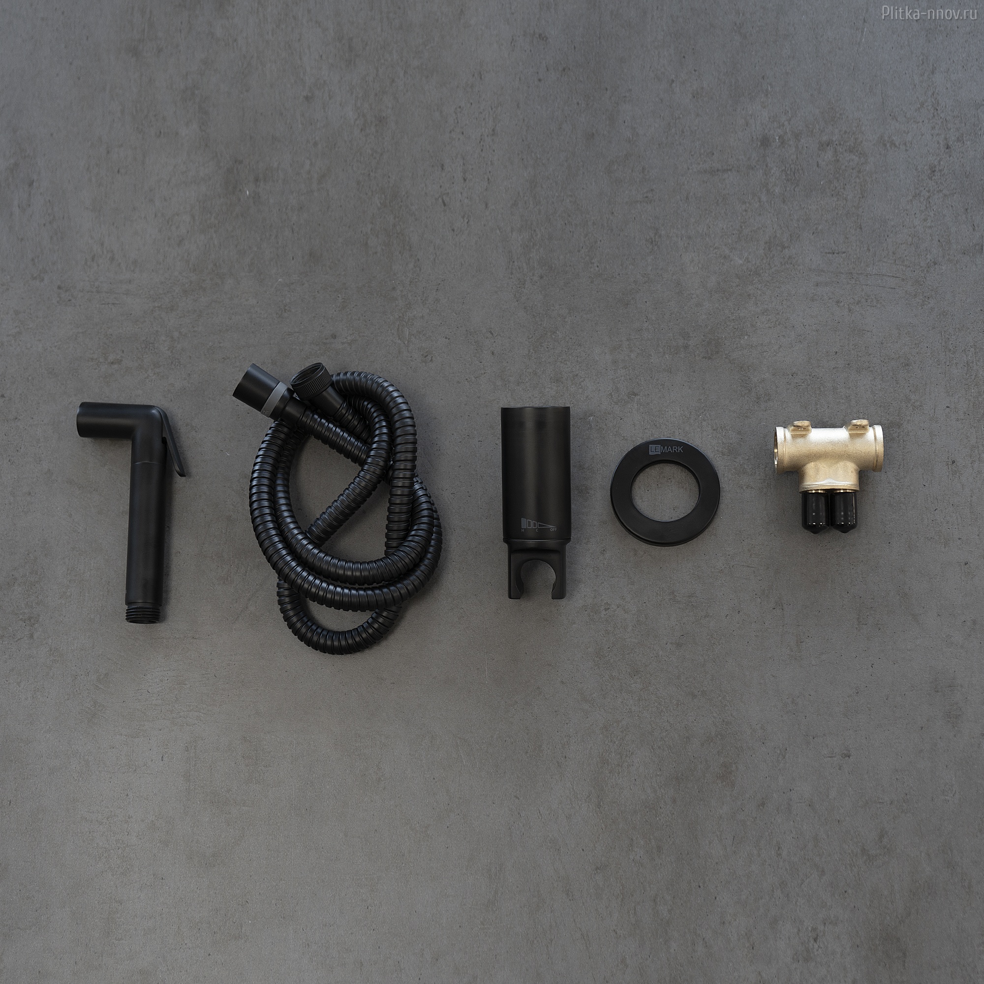 Аксессуары в комплекте: лейка гигиенического душа с нажимным механизмом, душевой шланг 1,2 м (Turn-Free)