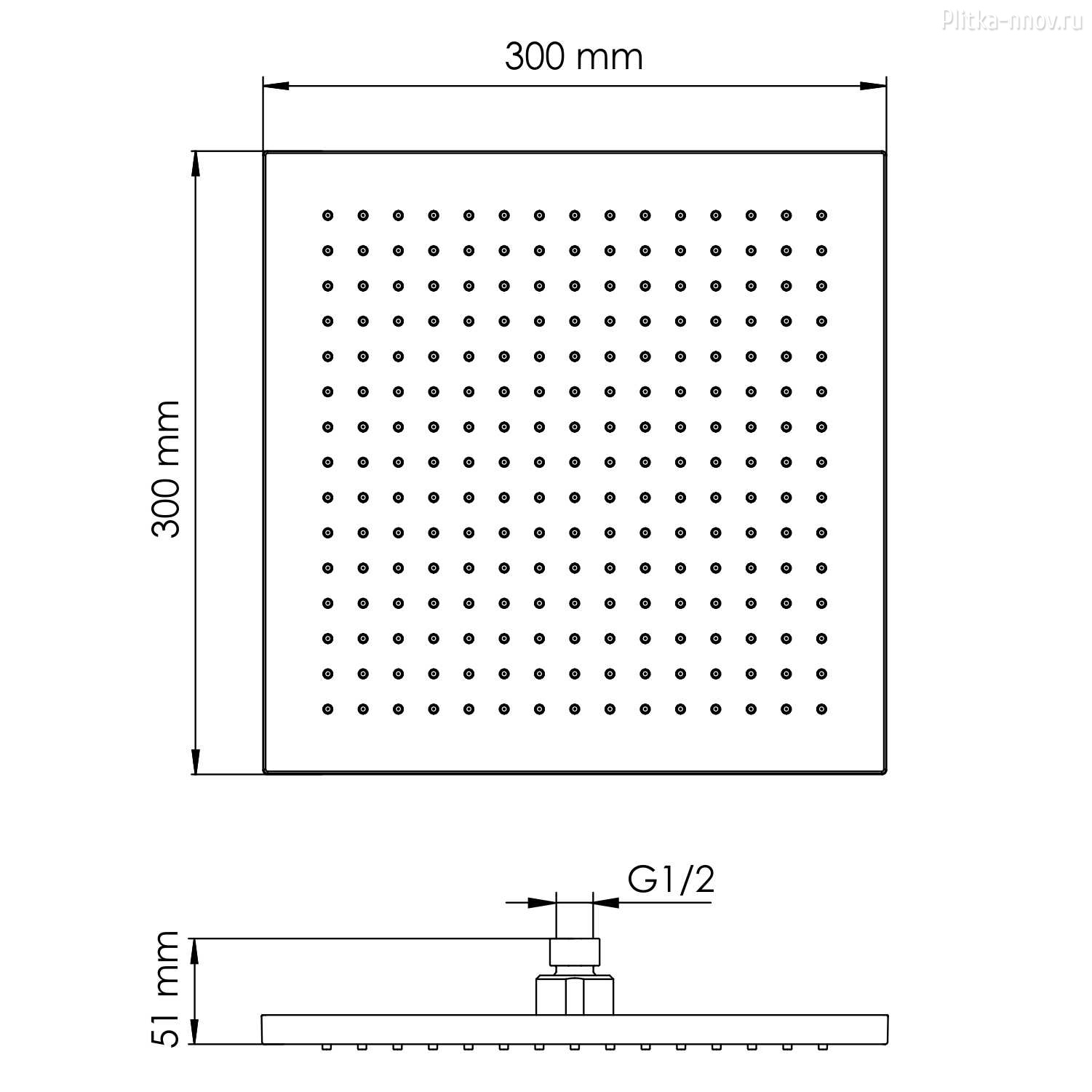 Душевая насадка 300x300 мм, 144 форсунки