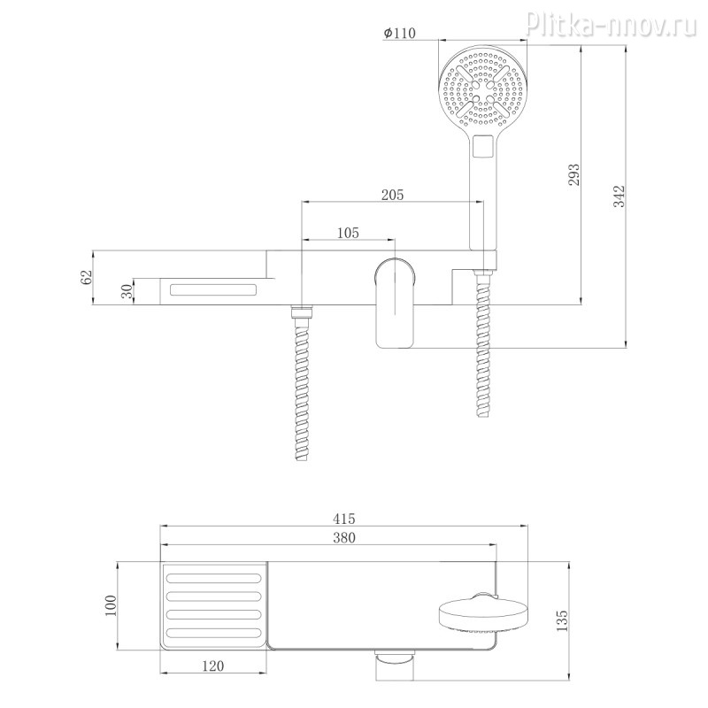 Аксессуары в комплекте (3-функциональная лейка, настенное крепление для лейки, душевой шланг 1,5 м)